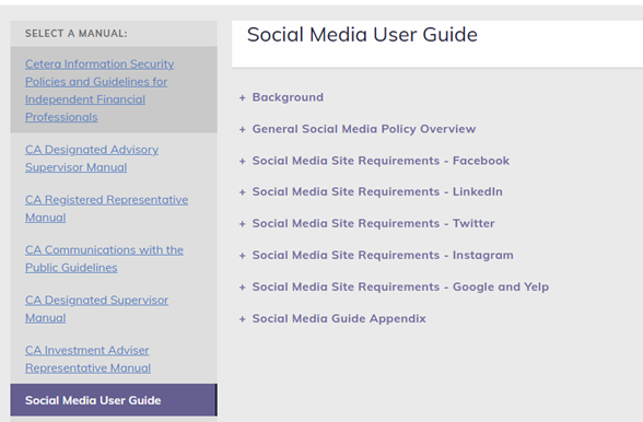 Please review Cetera’s Social Media Guide for more complete guidance and information.